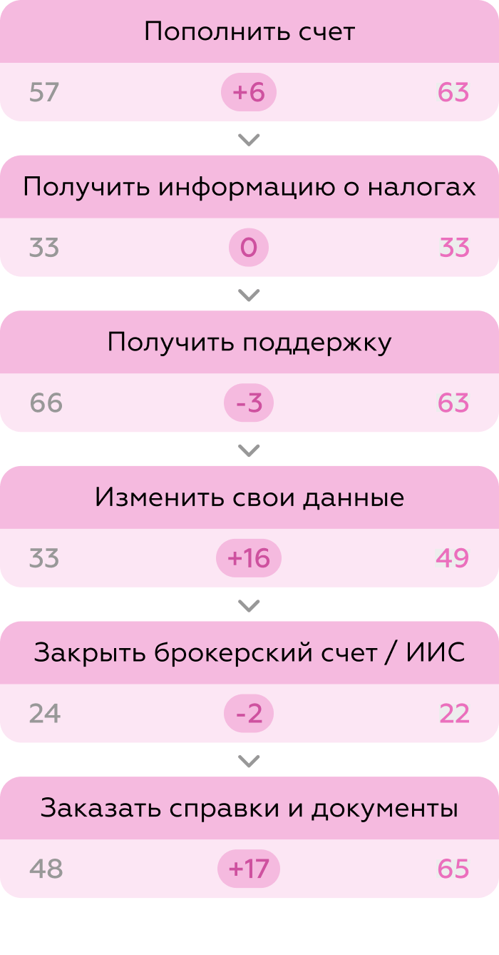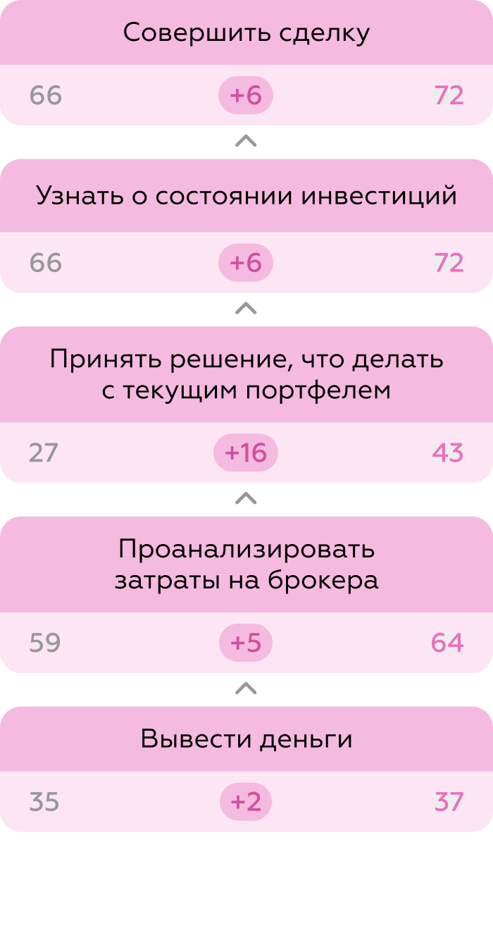 - Минимизация переходов в сторонние каналы (сайт брокера или приложение банка) для выполнения ключевых задач.