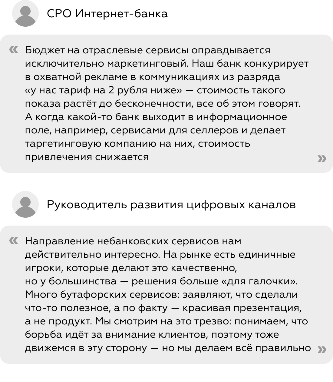 В сентябре-окрябре мы провели 10 глубинных интервью с предпринимателями и бухгалтерами, 7 экспертными с руководителями уровня CPO интернет-банка или директорами по развитию.