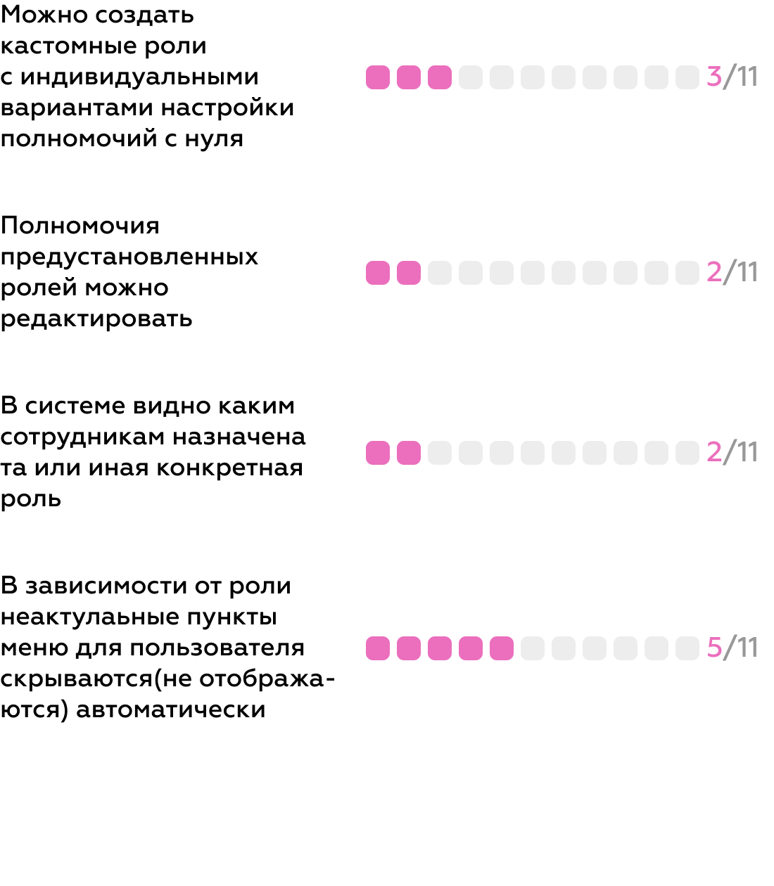 Мы посмотрели на все существующие на рынке сервисы, оценили ценность их фич для пользователей и разделили функциональность на три уровня: