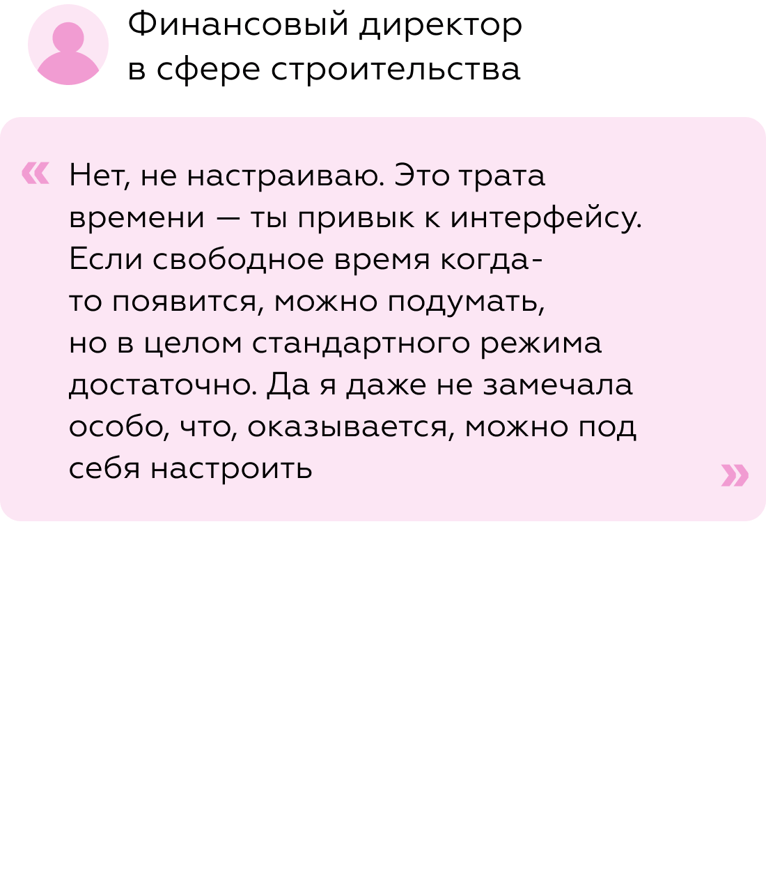 Однако по результатам интервью 8 из 10 респондентов не используют ручную кастомизацию и не видят в ней ценности: настройка интерфейса требует времени, которого у них нет, а стандартное расположение разделов проще запомнить и использовать в повседневной работе.