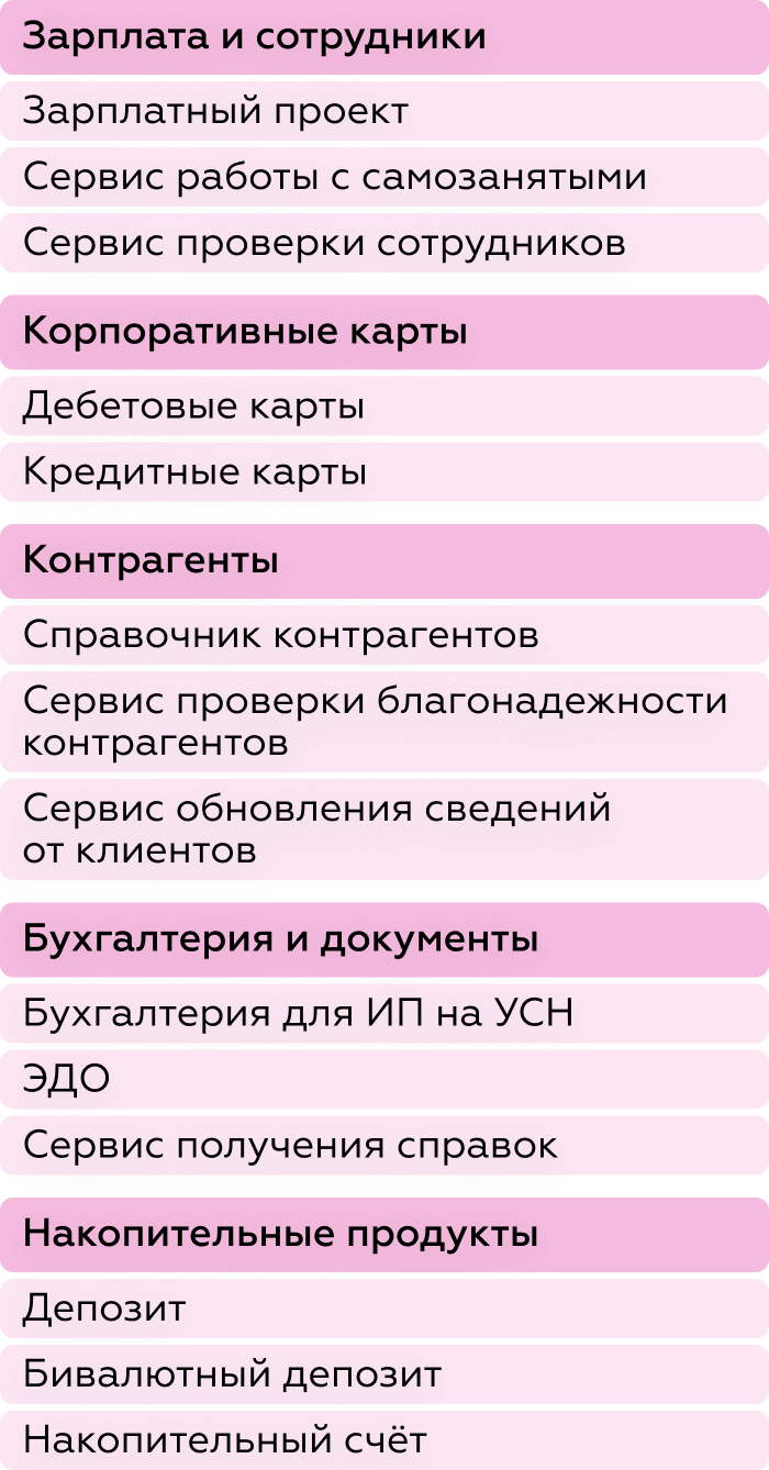 - обеспечивают удобное управление расчётным счётом и связанными продуктами;