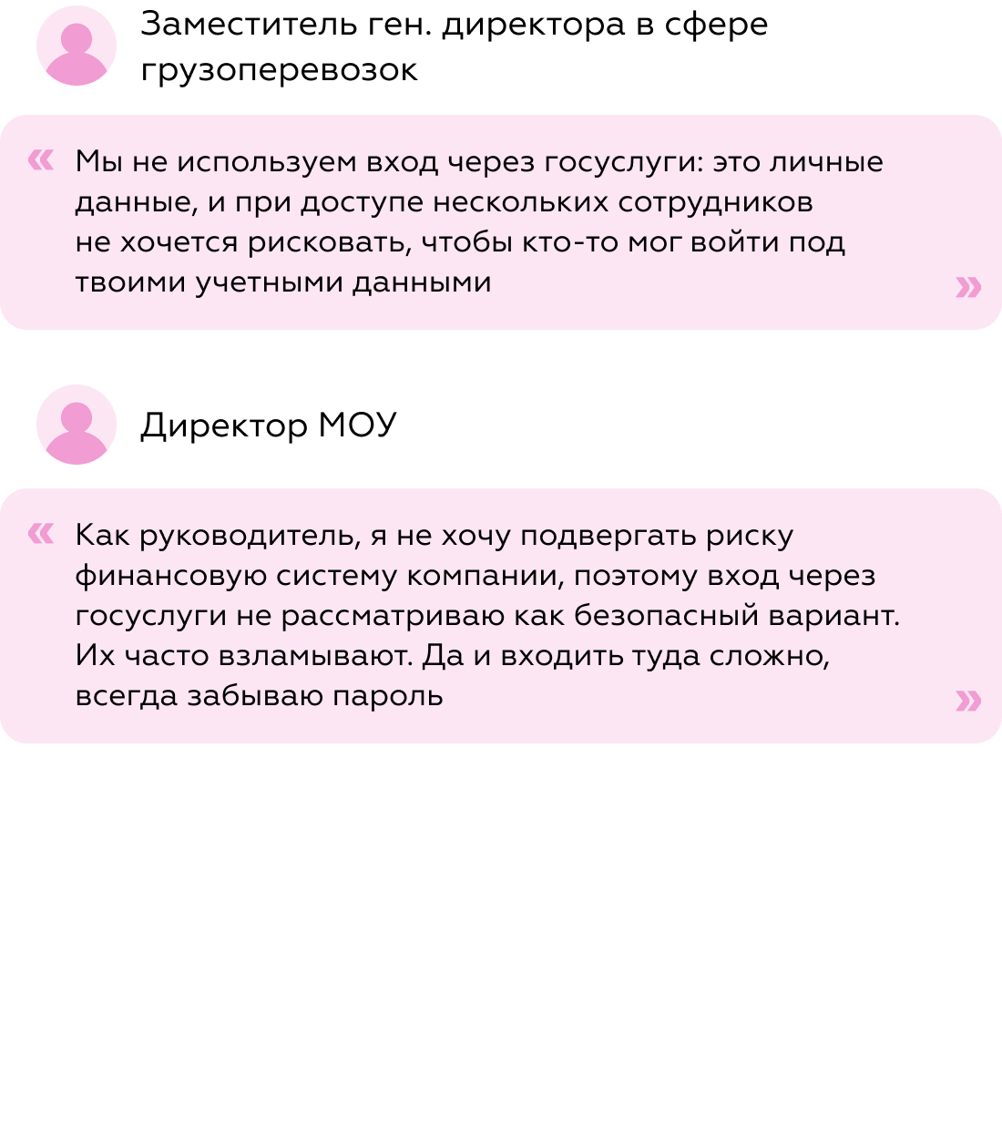 Этот способ не подходит компаниям, где в интернет-банк входят несколько сотрудников: руководитель не будет передавать личный аккаунт, а значит задача резервного доступа не решается. Пользователи также воспринимают вход через Госуслуги как менее безопасный и неудобный из-за сложного процесса авторизации, фактически он работает в основном для соло-предпринимателей.