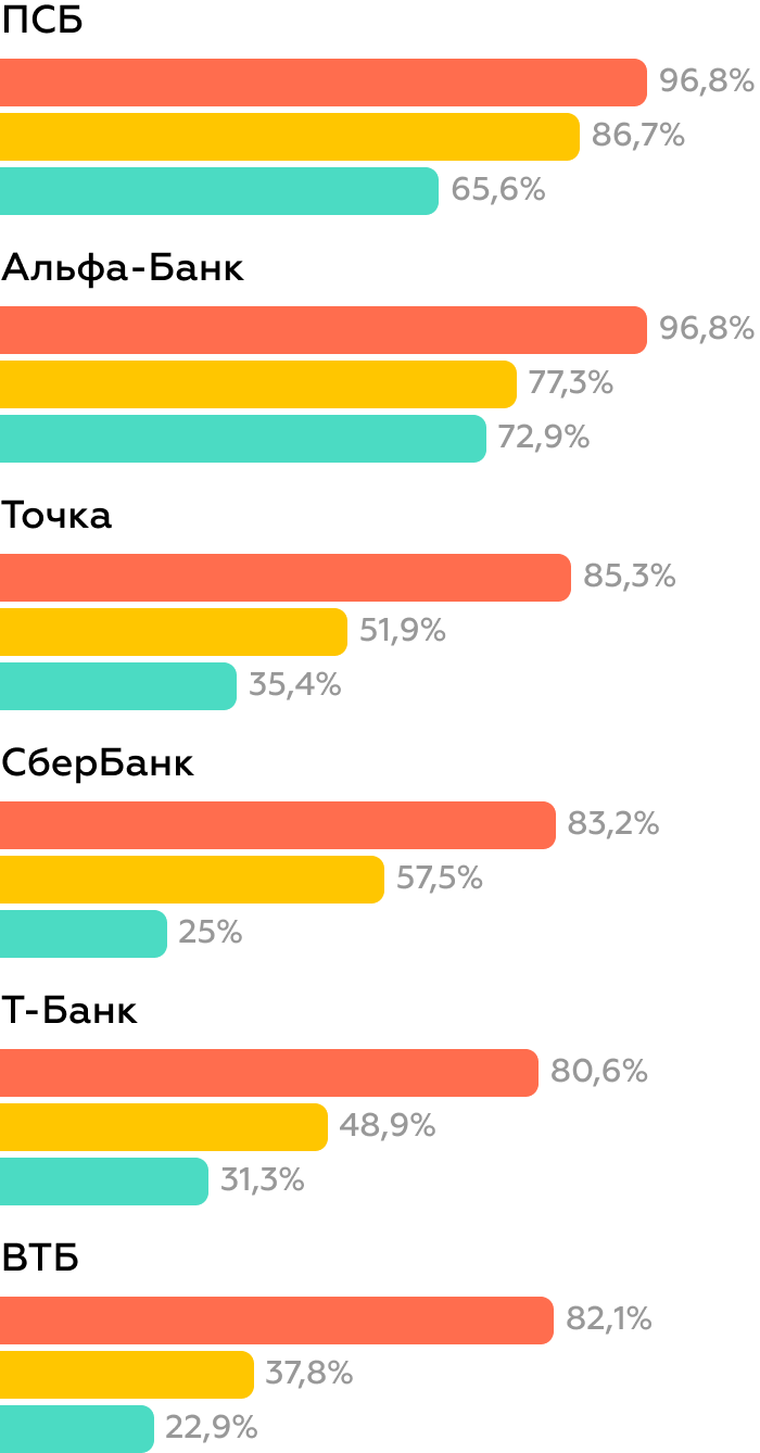 Мы анализировали версии интернет-банков, актуальные на 20 октября; изменения, внедрённые после этой даты, в исследовании не учтены.
