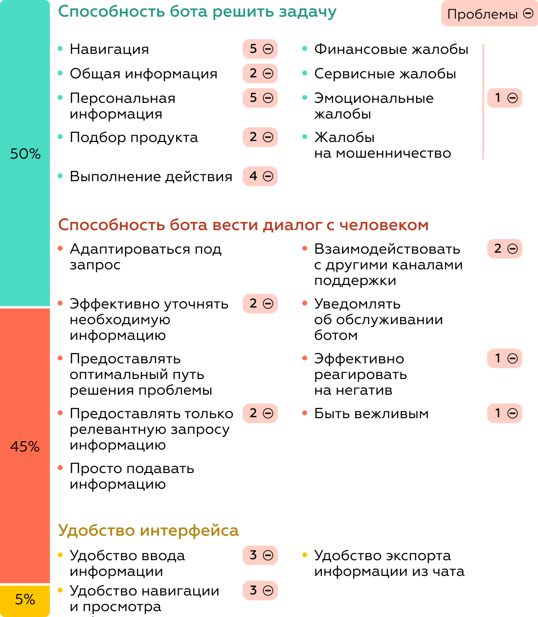Развитию бота могут помочь не только позитивные практики, но и примеры проблем. Всего в отчете мы собрали 33 проблемы и в публичной части исследования разберём две из них.