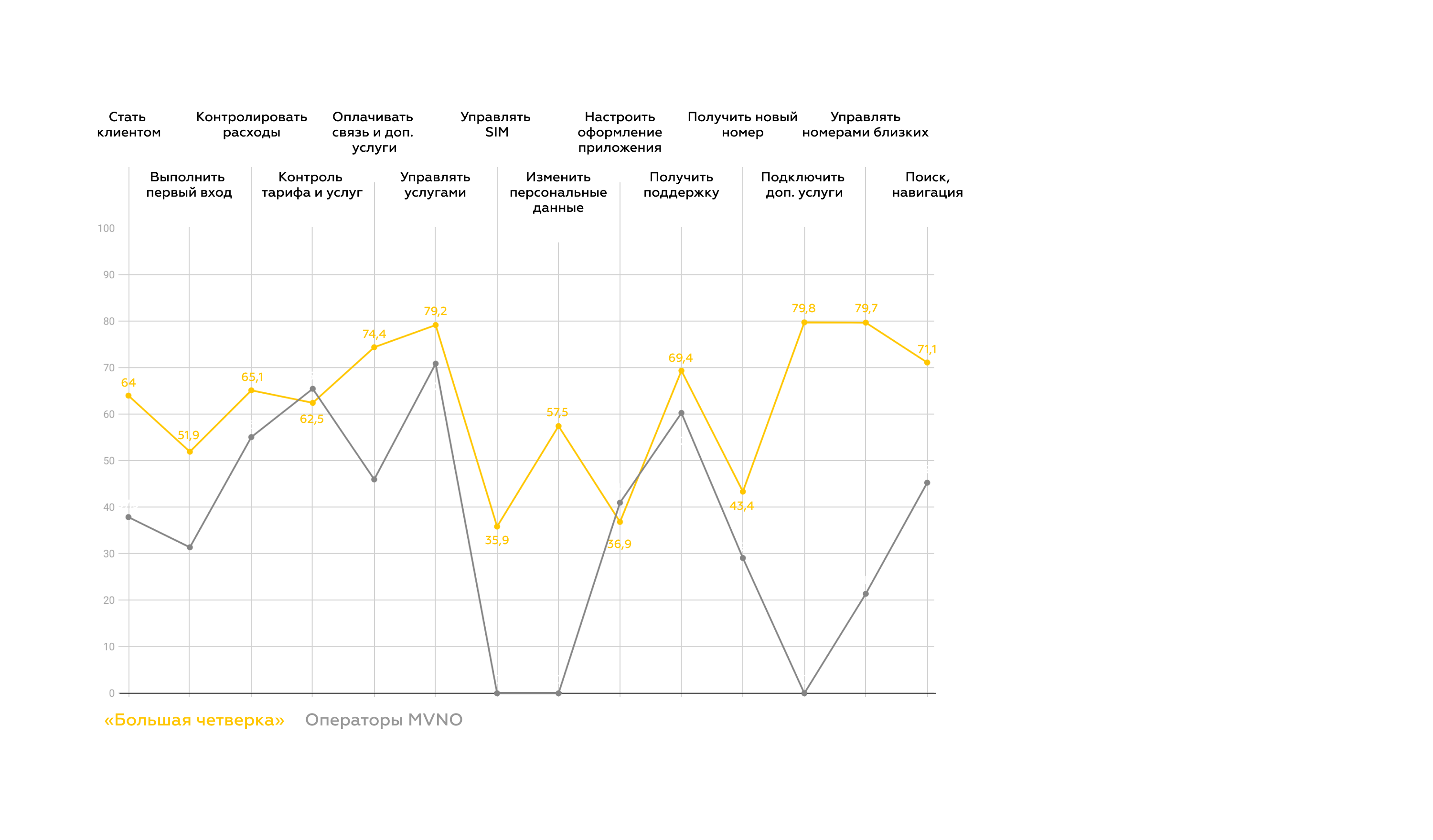 Исследование охватывает весь цикл использования услуги, включая возможности роуминга, управление пакетами данных и номерами близких — всего 60 пользовательских сценариев.