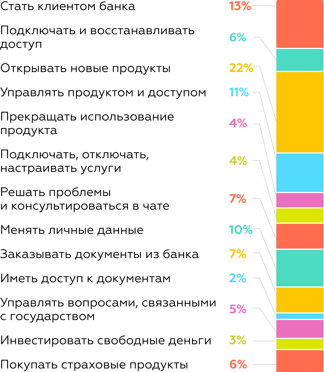 Перевыпуск кредитных и некоторых дебетовых карт, смена адреса регистрации, более полная информация о банковских продуктах на этапе выбора и заказа, а также о том, как рассчитывается кредитный потенциал клиента.